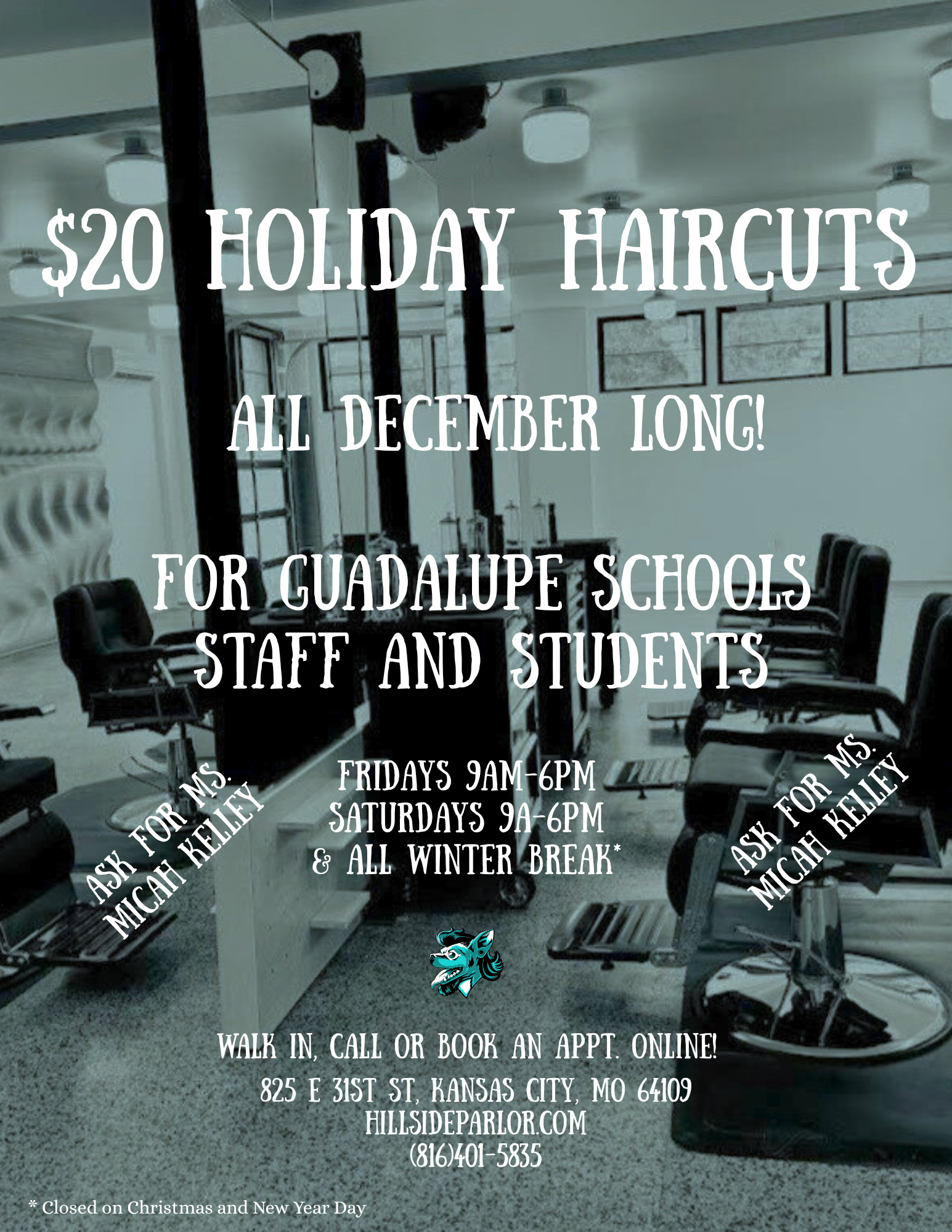 We’re happy to share that discounted haircut pricing and extended service days will continue for the rest of the 2026 school year! Special Rates K–8th grade students: $15 High school students & staff: $20 Business Hours Thursday: 1:00 PM – 8:00 PM Friday: 9:00 AM – 6:00 PM Saturday: 9:00 AM – 3:00 PM Details & Address are included in the flyer—be sure to ask for Micah Kelley when you arrive!