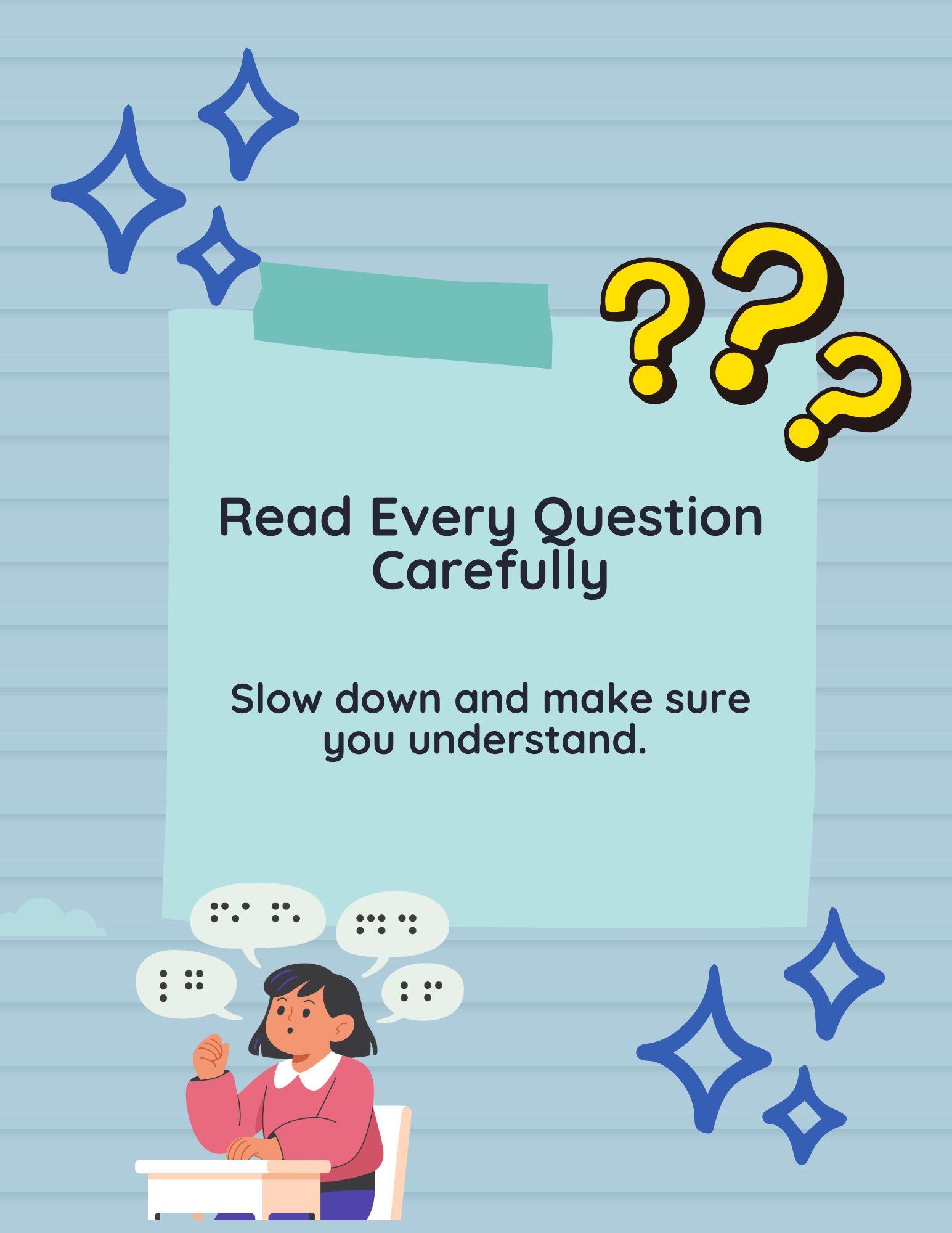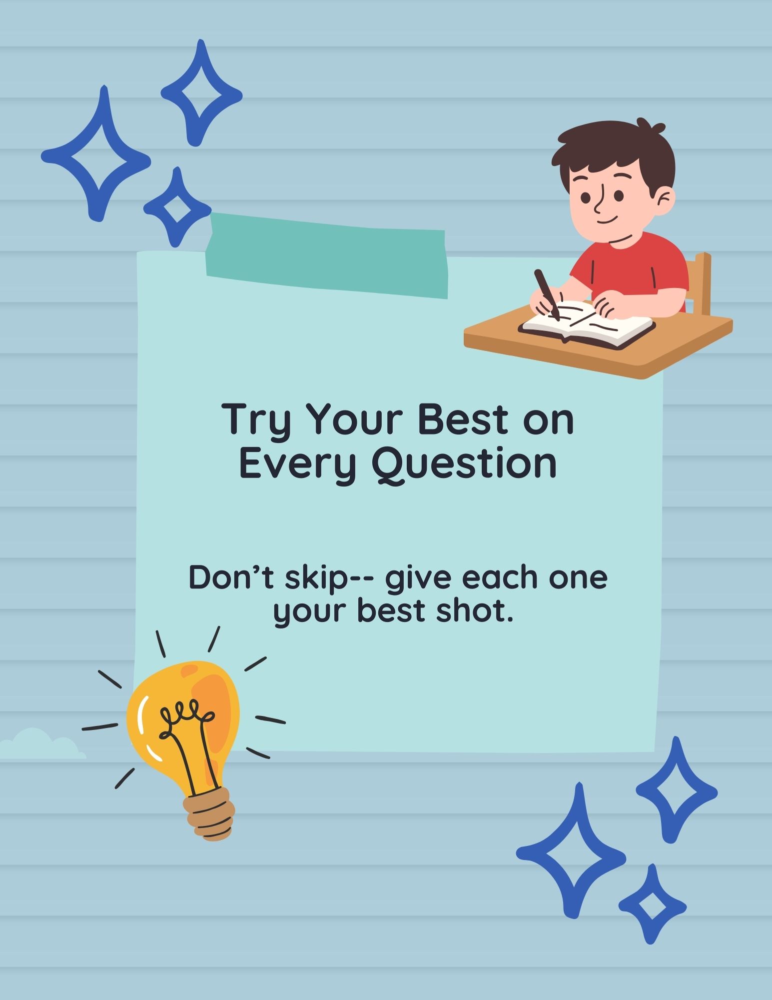Testing Season Is Coming Up! We’ll be sharing testing tips with our students to help them feel confident and prepared. Simple things like getting a good night’s sleep, eating a healthy breakfast, arriving on time, and staying calm can make a big difference!