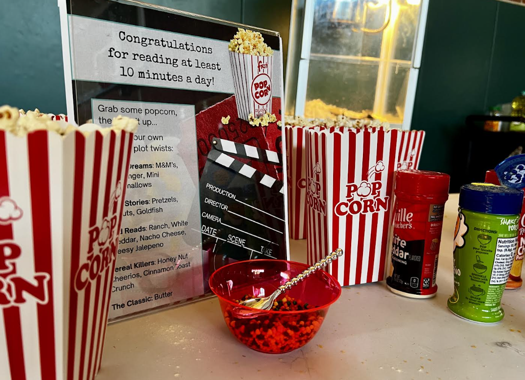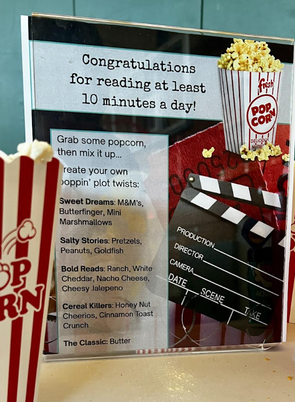 Students who read over 3 hours during winter break were treated to a movie party with popcorn, sweets, and fun. A special thank you to AMC at Town Center Plaza for generously providing a popcorn bucket to every participating student. Your support made this celebration extra special! |