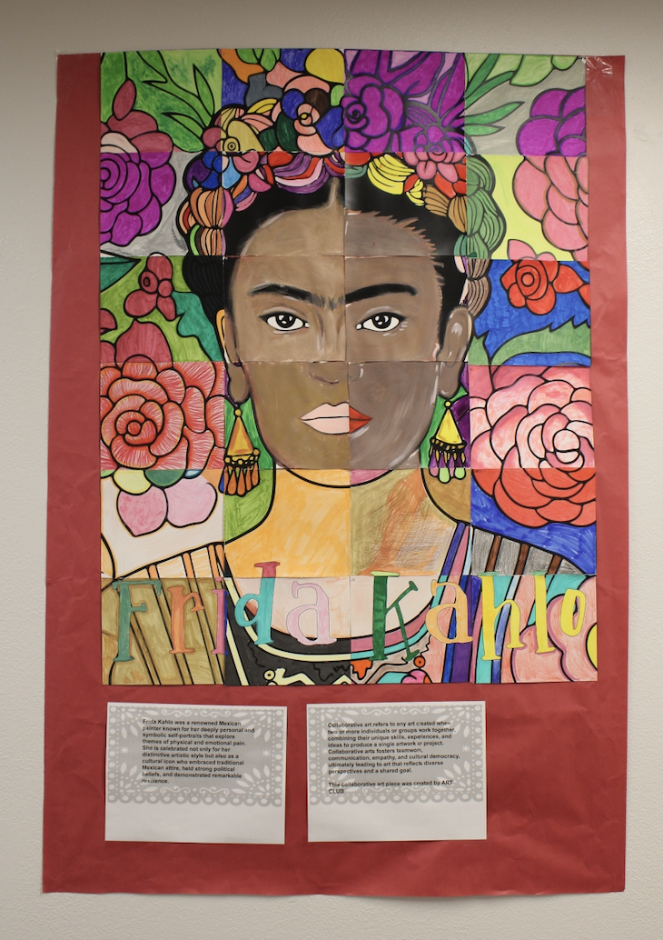 I'm a new paragraph block.Our talented Art Club students each took a piece and brought it to life with their creativity — together, they created a stunning portrait of Frida Kahlo! Huge shoutout to Dr. Wright’s Art Club for this amazing collaborative masterpiece! |