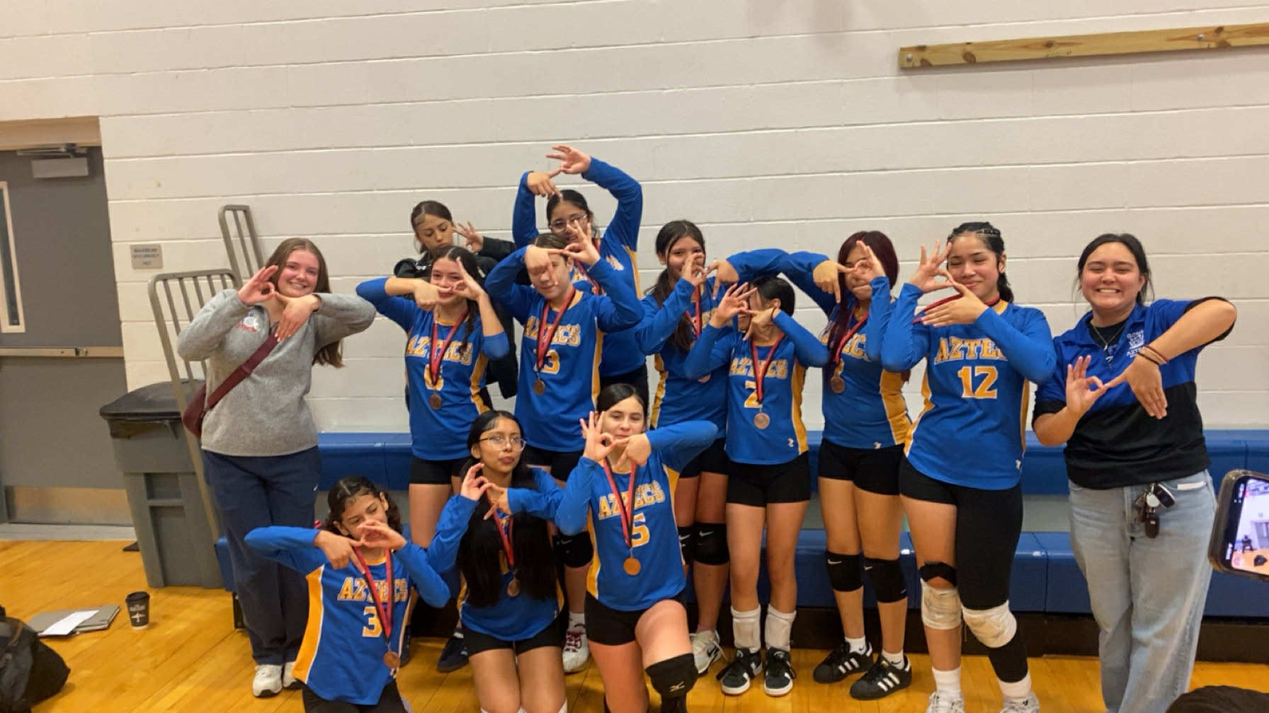 Congratulations to our Lady Aztecs! Our volleyball team fought hard and came out in 3rd place!!! After losing the first set of their match, they came back strong to claim the win!